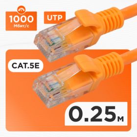 Патч-корд UTP Cablexpert оранжевый категории 5e длиной 0.25 метров PP12-0.25M/O - это надежный и качественный кабель, предназначенный для соединения различных устройств и оборудования.