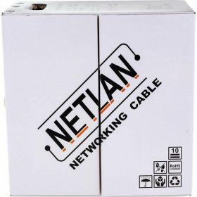 Кабель NETLAN U/UTP 4 пары, Кат.5e (Класс D), 100МГц, одножильный, BC (чистая медь), внутренний, PVC нг(B), серый, 305м