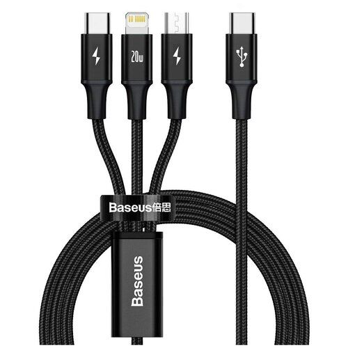 НАЙТИ ВЫГОДНЕЕ - Кабель Baseus Rapid Series 3-in-1 Fast Charging Data Cable Type-C to C+L+C PD 20W 1.5m - черный (CAMLT-SC01)