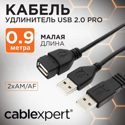 НАЙТИ ВЫГОДНЕЕ - Кабель удлинитель USB 2.0 Pro, 2xAM/AF, экран, 0,9 м, черный, Cablexpert CCP-USB22-AMAF-3