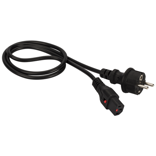 Разъём Schuko (евровилка) с одной стороны кабеля гарантирует совместимость с большинством розеток, используемых в Европе и России. Он оснащён заземлением, что обеспечивает дополнительную безопасность при эксплуатации электротехники. Это особенно важно для устройств, чувствительных к перепадам напряжения, а также для предотвращения риска поражения электрическим током. Разъём IEC-320-C13 на другом конце кабеля является стандартным для многих видов оборудования, включая системные блоки ПК, ИБП и периферийные устройства.