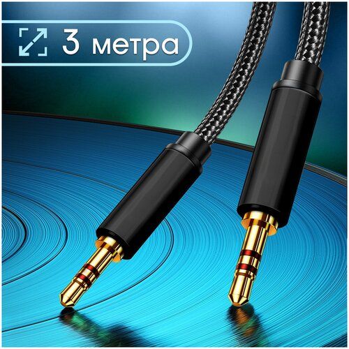НАЙТИ ВЫГОДНЕЕ - Кабель AUX 3.5mm в тканевой оплетке WALKER CA-520, mini jack, двусторонний, 3м, прямой штекер, черный / акустический шнур на телефон, аудио автомобиль
