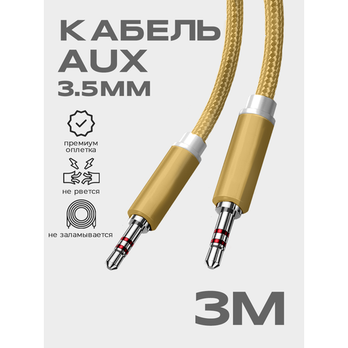 НАЙТИ ВЫГОДНЕЕ - Кабель AUX 3.5mm в тканевой оплетке WALKER CA-520, mini jack, двусторонний, 3м, прямой штекер, золотой / акустический шнур в телефон, аудио автомобиль