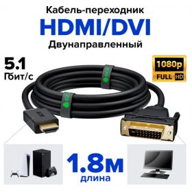 Двунаправленный кабель переходник HDMI > DVI, HDMI < DVI