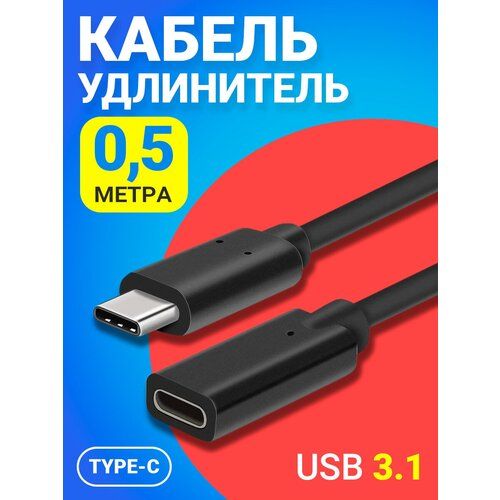 Кабель удлинитель GSMIN A82 Type-С (Male) - Type-C (Female) USB 3.1 (0.5 м) (Черный)