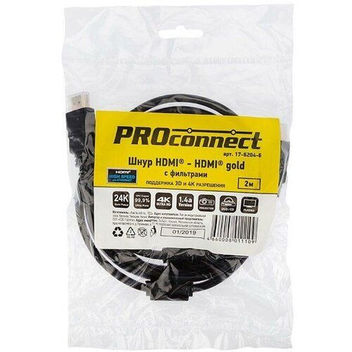 НАЙТИ ВЫГОДНЕЕ - Шнур/кабель/провод HDMI - HDMI 1.4 3D 4K PROconnect для телевизоров компьютера ноутбука, 2 м