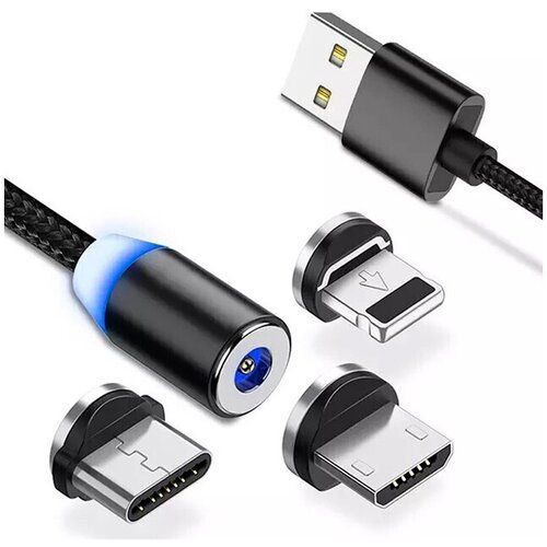 НАЙТИ ВЫГОДНЕЕ - Магнитный кабель 3 в 1 Micro, Type-C, Lightning / Зарядка с тремя коннекторами Микро ЮСБ, Тайп-Си, Лайтинг / Зарядный шнур с магнитами 2 метра (Черный)
