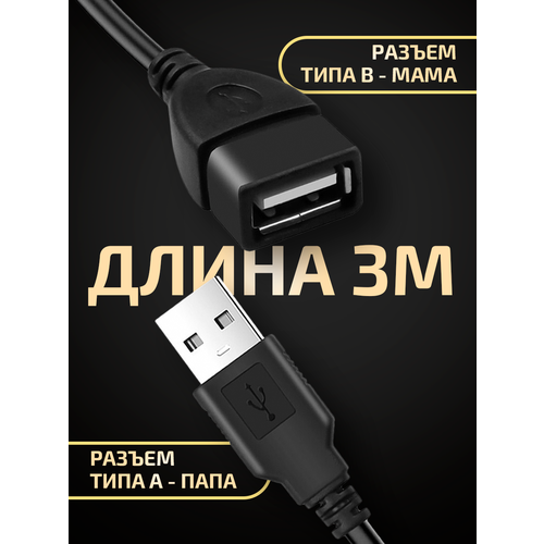 НАЙТИ ВЫГОДНЕЕ - Удлинитель кабеля USB для компьютера 3 метра, AMFOX, шнур A - B папа-мама, переходник для подключения юсб устройств, провод для ноутбука, черный