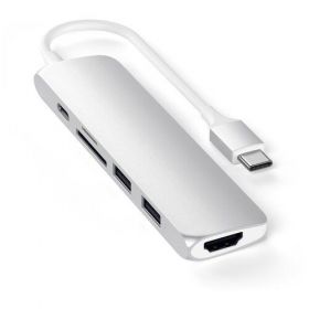 Найти - Переходник/адаптер Satechi SLIM ALUMINUM TYPE-C MULTI-PORT ADAPTER V2 (ST-SCMA2), длина 0.15 м, 1 шт., Silver