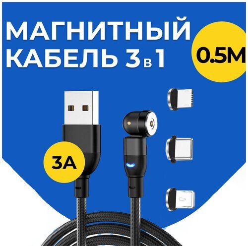 НАЙТИ ВЫГОДНЕЕ - Магнитный кабель для зарядки 3 в 1, Type-C, Lightning, Micro USB / Провод на iPhone, Samsung, Android / Шнур