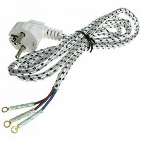 Провод для утюга (шнур для утюга) изготавливается из трехжильного кабеля в тканевой оплетке, которая придает ему дополнительную прочность и защищает от чрезмерных изгибов, а так же защищает провод от высоких температур в случае случайного (кратковременного) прикосновения горячего утюга к проводу.