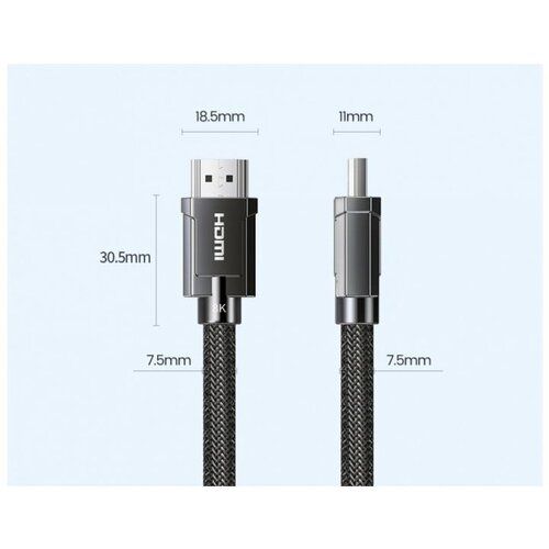 Найти - Кабель UGREEN 8K HDMI 2.1 Male To Male Cable Zinc Alloy Shell Braided 2m HD135 (70321) (Gray)