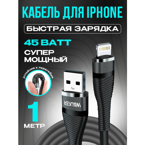 Найти - Кабель для зарядки WALKER C735, С БЫСТРЫМ ЗАРЯДОМ 3.1 А в силиконовой оплетке, разъём Lightning, черный, 1 метр, шнур usb питания для телефона айфона