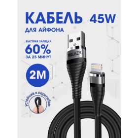 НАЙТИ ВЫГОДНЕЕ - Кабель для зарядки WALKER C735, С БЫСТРЫМ ЗАРЯДОМ 3.1 А в силиконовой оплетке, разъём Lightning, черный, 2 метр, шнур usb питания для телефона айфона