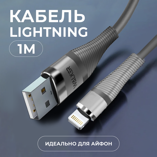 Найти - Кабель для зарядки WALKER C735, С БЫСТРЫМ ЗАРЯДОМ 3.1 А в силиконовой оплетке, разъём Lightning, серый, 1 метр, шнур usb питания для телефона айфона