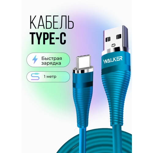 Найти - Кабель для зарядки WALKER C735, С БЫСТРЫМ ЗАРЯДОМ 3.1 А в силиконовой оплетке, разъём Type-C, синий, 1 метр, шнур usb питания для телефона андроид