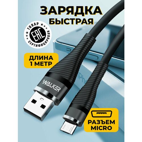 НАЙТИ ВЫГОДНЕЕ - Кабель для зарядки с быстрым зарядом, WALKER C735, 3.1 А в силиконовой оплетке, разъём USB-Micro, 1 м, шнур usb питания для телефона андроид, черный