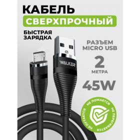 Микро usb кабель WALKER. имеет сертификацию и протоколы испытаний. Приобрети стильный и прочный кабель micro usb с поддержкой технологии стабильной быстрой зарядки micro usb. Силиконовая оплетка позволяет достичь необходимой гибкости при приличной толщине провода микро usb. Шнур имеет металлические коннекторы, что повышает износостойкость и позволяет крепко держаться в гнезде смартфона или телефона. Коннекторы полностью извлекаются и вставляются в устройство, в отличие от магнитного кабеля micro usb фирмы WALKER. Разъем Micro USB позволяет использовать провод micro usb для подзарядки и подключения ТВ, Аудио, Фото, Видео техники и прочей электроники. Пропускная способность юсб микро кабеля составляет 3.1А, длина - 2 м. Фирменная картонная упаковка