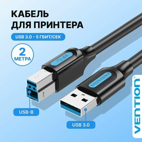 НАЙТИ ВЫГОДНЕЕ - Кабель для принтера, сканера USB Type B 3.0 длинной 2 метра Vention МФУ тип разъемов AM/BM, черный, арт. COOBH