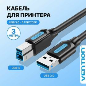 НАЙТИ ВЫГОДНЕЕ - Кабель для принтера, сканера USB Type B 3.0 длинной 3 метра Vention МФУ тип разъемов AM/BM, черный, арт. COOBI
