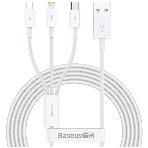 Кабель USB BASEUS Superior Series Fast Charging 3 в 1 USB - Type-C + Lightning + MicroUSB, 3.5A, 17.5W, 1.5 м, белый