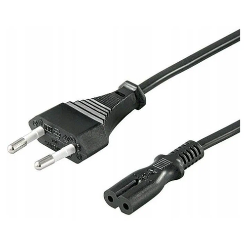 Сетевой кабель питания для телевизора, приставки, AV техники с разъемом IEC-C7 (восьмерка) с одной стороны и плоской двухполюсной штепсельной вилкой с другой.