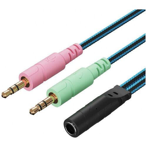 Аудио-разветвитель GSMIN RT-171 переходник на микрофон и наушники Mini Jack 3.5 мм (F) - Mini Jack 3.5 мм (M) + MIC 3.5 мм (M) (Синий)