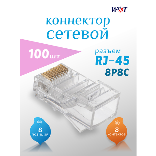 НАЙТИ ВЫГОДНЕЕ - Коннектор RJ-45 (8P8C) для кабеля UTP категории 5E (100 шт.), WT-6002A-100