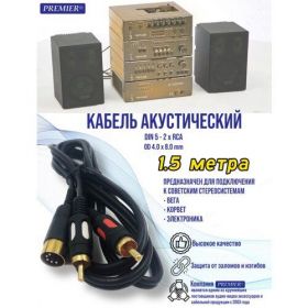 НАЙТИ ВЫГОДНЕЕ - Шнур DIN 5 pin штекер - 2 x RCA штекер позолоченный OD4.0x8.0мм 1.5метра