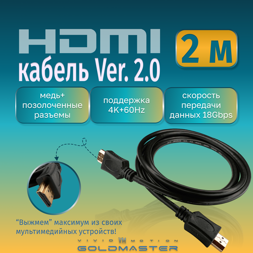 Найти - Кабель GoldMaster HDMI 2м Шнур HDMI - HDMI - 2м Ver 2.0, GoldMaster с позолоченными коннекторами