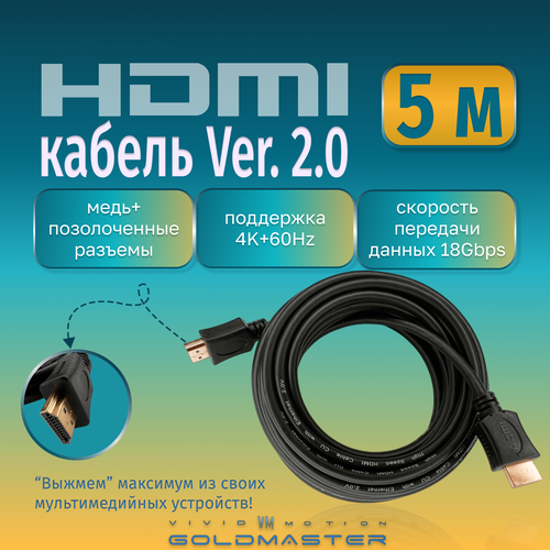НАЙТИ ВЫГОДНЕЕ - Кабель GoldMaster HDMI 5м Шнур HDMI - HDMI - 5м Ver 2.0, GoldMaster с позолоченными коннекторами