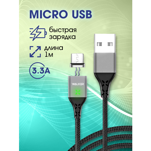 Магнитный кабель WALKER C970 с быстрым зарядом 3.3А и передачей данных.