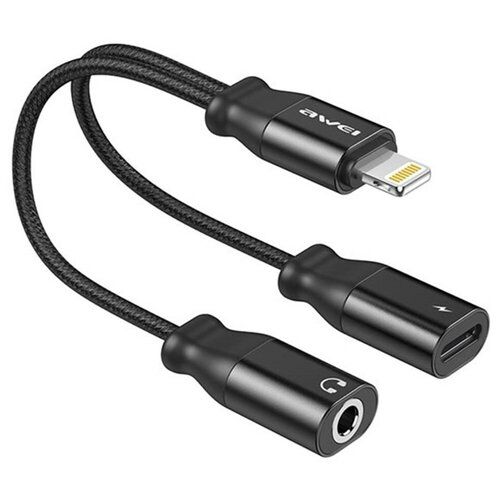 НАЙТИ ВЫГОДНЕЕ - Переходник-адаптер Awei CL-73 для iPhone/iPad, Lightning(M) to 3.5mm AUX+iP Charging, Черный