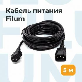 НАЙТИ ВЫГОДНЕЕ - Кабель питания Filum FL-PC6-C13-C14-5M С13- C14, 3х0.5мм², 220В, 6A, чёрный, 5м