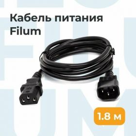 НАЙТИ ВЫГОДНЕЕ - Кабель питания Filum FL-PC6-C13-C14-1.8M С13- C14, 3х0.5мм², 220В, 6A, чёрный, 1.8м