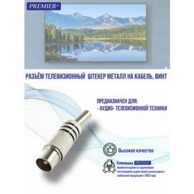 Найти - Разъем телевизионный PREMIER, серебристый, винтовой, для коаксиального кабеля