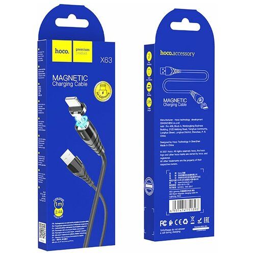 НАЙТИ ВЫГОДНЕЕ - Кабель для зарядки Lightning 1m 2,4A hoco X63 магнитный коннектор черный для Apple iPhone