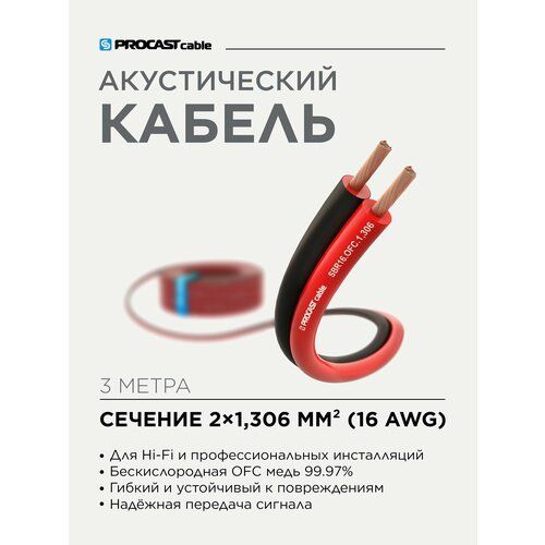 НАЙТИ ВЫГОДНЕЕ - Инсталляционный красно-черный акустический кабель 2х1,306mm² PROCAST Cable SBR 16. OFC 3м