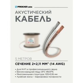 Найти - Инсталляционный Hi-Fi акустический кабель 2х2,11mm² в прозрачной изоляции PROCAST Cable ST 14. OFC 5м