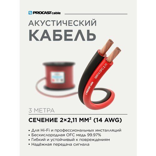 НАЙТИ ВЫГОДНЕЕ - Инсталляционный красно-черный акустический кабель 2х2,11mm² PROCAST Cable SBR 14. OFC 3м