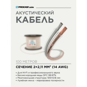 НАЙТИ ВЫГОДНЕЕ - Инсталляционный Hi-Fi акустический кабель 2х2,11mm² в прозрачной изоляции PROCAST Cable ST 14. OFC 100м