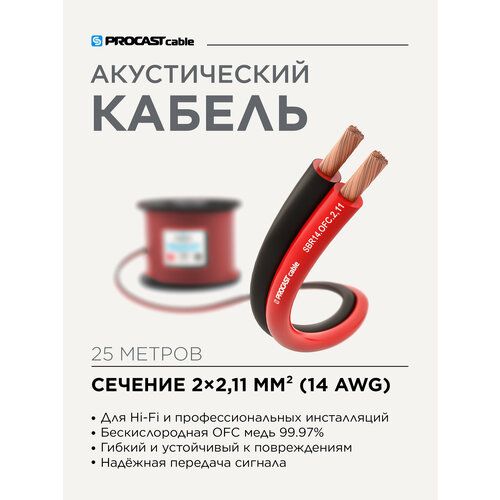НАЙТИ ВЫГОДНЕЕ - Инсталляционный красно-черный акустический кабель 2х2,11mm² PROCAST Cable SBR 14. OFC 25м