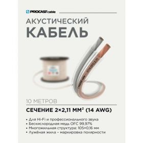 Найти - Инсталляционный Hi-Fi акустический кабель 2х2,11mm² в прозрачной изоляции PROCAST Cable ST 14. OFC 10м