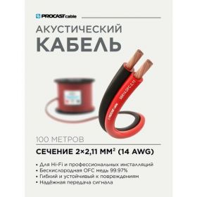 Найти - Инсталляционный красно-черный акустический кабель 2х2,11mm² PROCAST Cable SBR 14. OFC 100м