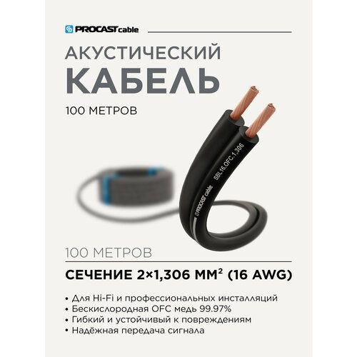 НАЙТИ ВЫГОДНЕЕ - Акустический кабель инсталляционный черный 2 х 1,306mm² PROCAST Cable SBL 16. OFC 100м