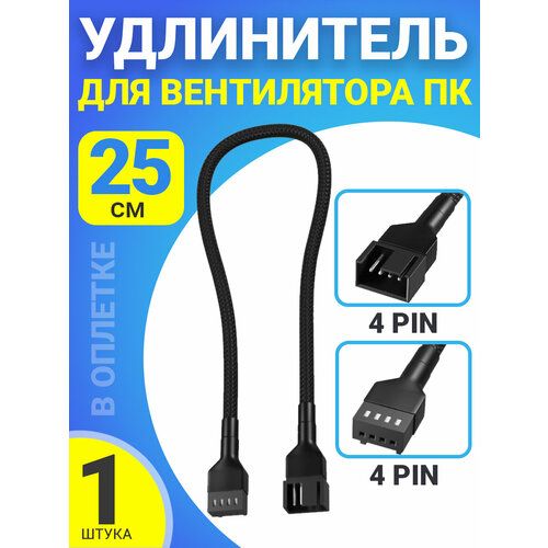 Найти - Кабель удлинитель для вентилятора ПК 4 pin (F) - 4 pin (M) 25 см в оплетке (Черный)