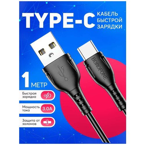 НАЙТИ ВЫГОДНЕЕ - Кабель USB Type-C 3А зарядки телефона и передачи данных, кабель для быстрой зарядки, провод type С шнур 1 метр, черный
