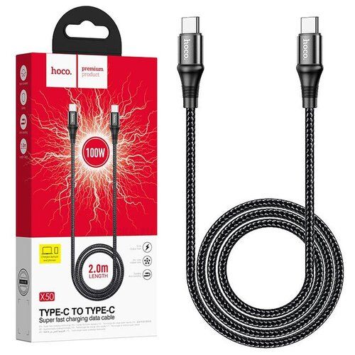 НАЙТИ ВЫГОДНЕЕ - Кабель для зарядки/ Type-C на Type-C/ быстрый заряд Max 100Вт/ кабель для телефона 2.0 м, Hoco X50/чёрный