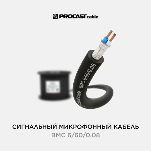 PROCAST cable BMC 6/60/0,08 – профессиональный балансный микрофонный (сигнальный) кабель для подключения балансных микрофонов, симметричных и стереофонических источников линейного звукового сигнала. Рекомендуемая длина трассы – до 100 метров. Внешний диаметр кабеля – 6 mm, цвет внешней PVC изоляции черный, две центральные жилы имеют бело-голубую XLPE изоляцию. Экран – оплетка из луженой меди плотностью 96%, 144 проводника диаметром 0,10 mm. Пространство между внутренними проводниками и внешней изоляцией заполнено шелковыми нитями, обернутыми в папирус. PROCAST cable BMC 6/60/0,08 – может использоваться в широком диапазоне температур – от -40 до +70 °C. Кабель гибкий и хорошо защищен от внешних механических и климатических воздействий. Отлично подойдет как для мобильных инсталляций и использования в сценических комплектах, так и для межблочных подключений и соединения микрофонов в системах Public Address любой сложности.