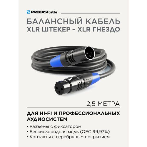 Найти - PROCAST cable XLR(m)/XLR(f).2.5 Профессиональный балансный звуковой кабель XLR(male) / XLR(female), длина 2,5 м